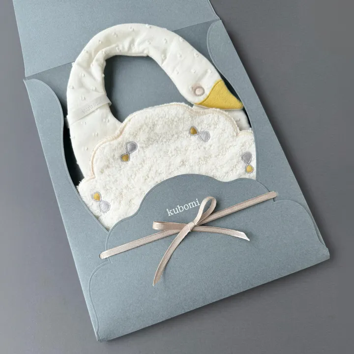 2024年新作【あひるのスタイ】のギフトセット キナリの優しい色合いと肌触りのオーガニックコットンを使用した 【あひるのスタイ】と【刺繍タオル・汗取りパッド】をセットにした kubomiの箔押しの入ったギフトボックス付きで、出産祝いに喜んでいただけるお品です 商品詳細 【 あひるのスタイ 】 雪のようなスノードット柄の入った、ドビー織りのオーガニックコットンを使用した、かわいらしいあひるのよだれ掛けです。 ・首周りのサイズが2箇所のスナップで調節可能です ・表地には100%オーガニックコットンを使用しています ・目はフェルトのアップリケを、ひとつずつ手縫いで仕上げています ・薄い中綿が入っているので、吸水性もよくフカフカの肌触りです [ 寸法 ]横17cmX縦21cm [ 素材 ] 表地裏地:オーガニックコットン 100% くちばし:綿 100%  ・中綿:ポリエステル 100% ------------------------------------------------- 【刺繍タオル・汗とりパッド】 ちょうちょの刺繍をほどこした、シェル型のタオルです。 オーガニックコットンの吸水性のよいふわふわのタオル地で、赤ちゃんの背中に入れて汗とりパッドとしてもご使用いただけます。 [ 寸法 ]  26×18cm [ 素材 ]  表地…オーガニックコットン100% ------------------------------------------------- \オーガニックコットンについて/ オーガニックの生地は「bioRe(ビオリ)COTTON」というインドとタンザニアで展開されている 「bioRe PROJECT」から生まれるオーガニックコットン100%の生地を使用しております オーガニックコットン素材を選ぶことで、オーガニックな農地が広がり、キレイな地球を未来に残していけるよう願いをこめて…