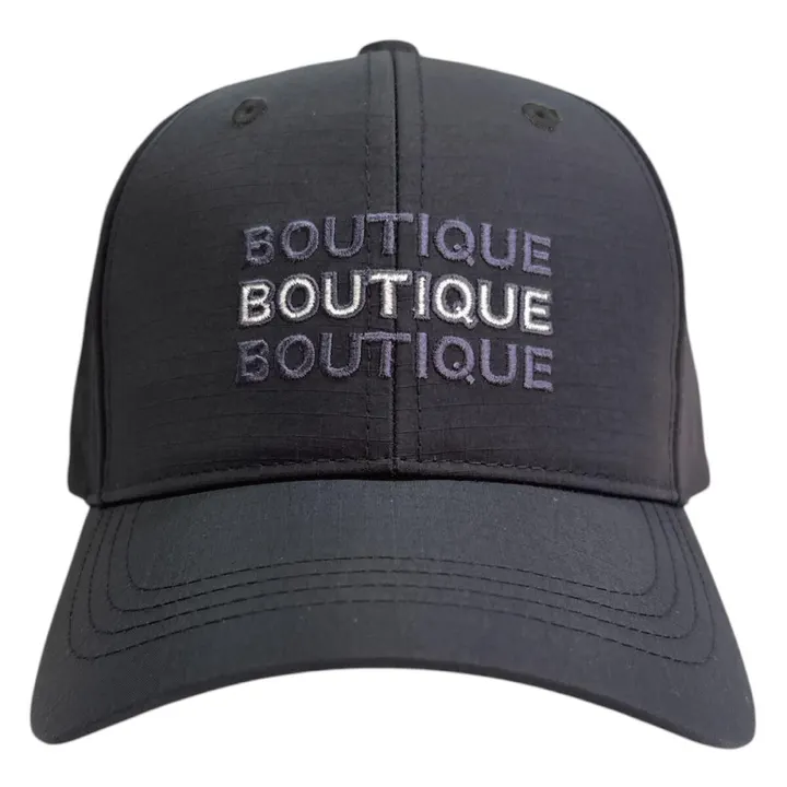 刺繍の上下はキャップのボディに馴染むトーン、真ん中はアイボリーの刺繍を施し立体感と抜け感を演出。密度の高いリップストップのナイロン素材でしっかりと仕上げています。