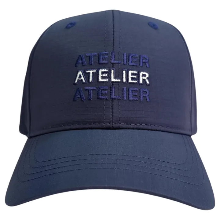 刺繍の上下はキャップのボディに馴染むトーン、真ん中はアイボリーの刺繍を施し立体感と抜け感を演出。密度の高いリップストップのナイロン素材でしっかりと仕上げています。