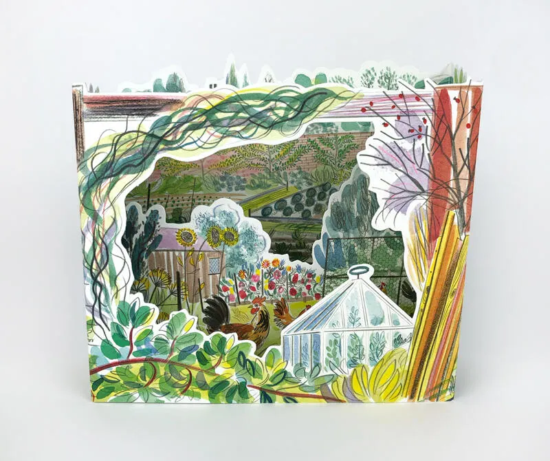 イギリスのペーパーステーショナリーカンパニー「Art Angels」の3D ダイカットカードです。 3D allotment card by Emily Sutton