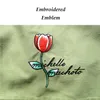 裾には、チューリップのブランドエンブレムの刺繍があり、エレガントな仕上がり。