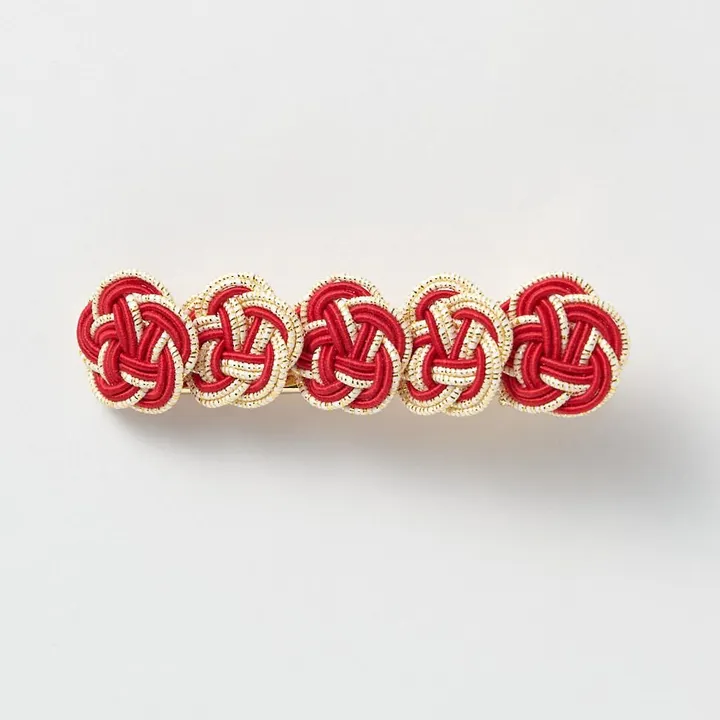 梅結びを4連でしつらえたクリップピンです。 繊細に結ばれた水引が、和の優雅さを引き立て、普段使いはもちろん、特別な日の装いにも華を添えます。小ぶりで主張しすぎないデザインが、どなたの髪にも自然に溶け込みます。和装にも洋装にも馴染むため人気です。 さりげなく和の風情を取り入れたい方へ。自分へのご褒美にも、大切な方への贈り物にもおすすめです。