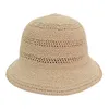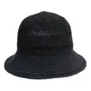 サーモ素材のクロシェハット。透かし編みの柄を入れたデザインです。広めのツバで日除け対策バッチリなアイテムです。