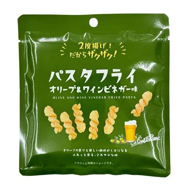 食べやすい一口サイズのパスタを、二度揚げして食べごたえあるザクザク食感に仕上げました。 香りや味わいにこだわりのある、クラフトビールのおつまみをイメージ。 フレーバーはブラックペッパー・オリーブ&ワインビネガー・アラビアータの3種類。 ゆっくりリラックスしたプライベート時間におすすめのおつまみスナックです。