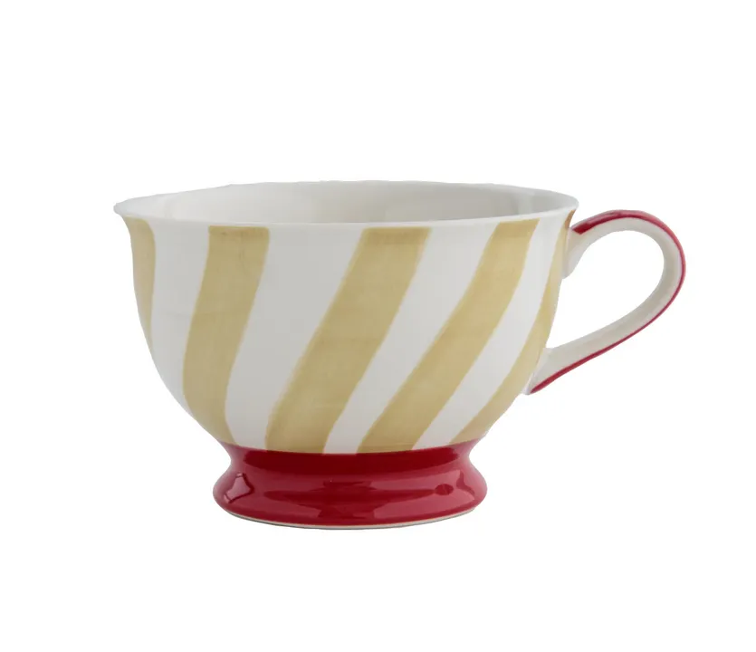 遊園地のコーヒーカップのような形状のマグ。 メリーゴーラウンドの木馬が回転するイメージで手描きをしたストライプ模様が、遊び心を感じさせるデザインです。 どこかレトロでポップな色の組み合わせが、楽しいホリデーシーズンを予感させます。 台紙に工夫を凝らした木製スプーン付き。 プレゼントにおすすめのギフトパッケージ入りです。