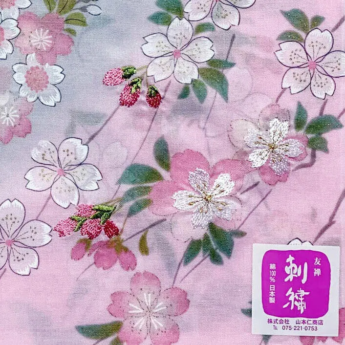 ハンカチ 綿ローン 友禅刺繍  夢見桜 ピンク