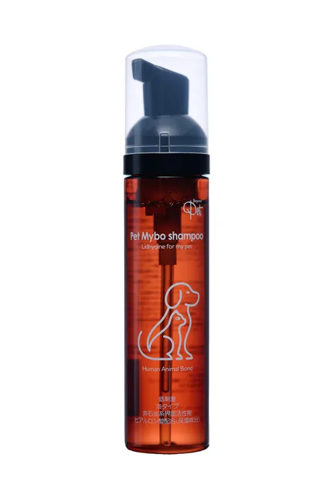 今までになかった泡タイプの眼の周りを洗うシャンプー。 目薬成分配合で眼や皮膚に低刺激、保湿成分ヒアルロン酸配合でしっとりさっぱり、いろいろな病気、涙やけ等から眼を守ります。 獣医師の方も、診察の時や手術の前後に使用していただいています。 *1)リッドハイジーンが習慣になると*2)マイボーム腺の機能不全、白内障の予防にもなります。 また、涙やけやドライアイによる流涙へのケアなど歯磨きと同じように、予防医学として毎日のお手入れの習慣をお勧めします。 現在は動物病院を通して、またはトリミングショップ様を通しての販売とさせていただいております。 *1)リッドハイジーン(Lid Hygiene)眼瞼清拭という目元を清潔に保つ行為。 *2)マイボーム腺 瞼(まぶた)のふちにある皮脂腺で、涙の油脂分を分泌する。 人用のリッドハイジーン用シャンプー「マイボシャンプー」の開発にかかわっていたことから、ペットの眼も人と同じように綺麗にしたいという思いでペットマイボシャンプーを開発しました。