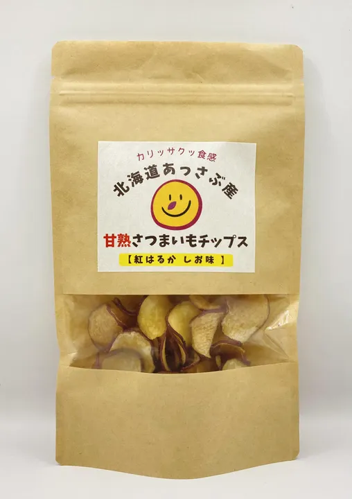 ✅【自然な塩味】素材の味を生かすため、粗目の塩を少々加えて作りました。 ✅【熟成北海道産紅はるか使用】「蜜芋」と呼ばれるほど甘い北海道産の紅はるかを3ヶ月以上熟成させてから使用。蜜の味が濃厚で上品な甘さのおいもチップスです。紅はるかは収穫後、じっくりと熟成させることで、でんぷんが糖に変わり、まるで蜜のような甘みが生まれます。 ✅【サクサクの軽やか食感!】特殊な加熱方法で2ミリの厚さがあるのに、サクッとした軽やかな食感に仕上げました。お茶請けとしても、おつまみとしてもお楽しみいただけます。 軽やかな食感で、年代問わずお楽しみいただけます。 ✅【素材そのまま】使っているのはさつまいも、塩、植物油のみのシンプル素材。酸化防止剤・保存料・香料・甘味料・着色料などの添加物は使用していません。紅はるか本来の濃厚で上品な蜜の甘さと香ばしさをそのまま閉じ込めています。 ✅【保管】保存しやすいようにジップロック式になっています。 ✅【産地】「甘熟さつまいもチップス」に使用しているのは、函館から車で約1時間の場所にある厚沢部町(あっさぶちょう)産の紅はるか。 道南でも有数の農業地帯である厚沢部町は、昼夜の寒暖差が大きく、さつまいもをはじめとする農作物の栽培に適した環境が整っています。 ✅【ご利用シーン】毎日のおやつはもちろん、ご家族との団らんやちょっとした手土産にもぴったり。 常温保存が可能で持ち運びもしやすいため、旅行やアウトドアなど、どこでも気軽に楽しめるおやつとしてもおすすめです。