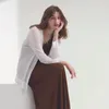 ・全体に縦のリブ編みを使用し、着用時にスリムに見える視覚効果あり ・ストレートなシルエットでヒップを軽くカバーする丈感(55サイズ基準:着丈約62cm) ・やや深めのVネックで首元をすっきりと長く見せる効果 ・ベーシックなカラーバリエーションで誰でも簡単にコーディネート可能 ・九分袖で手首が少し見え、暑苦しさなく夏まで着用可能 ・裾と袖口に1×1リブ仕上げで長く着ても伸びにくく、形状を保ちやすい仕様