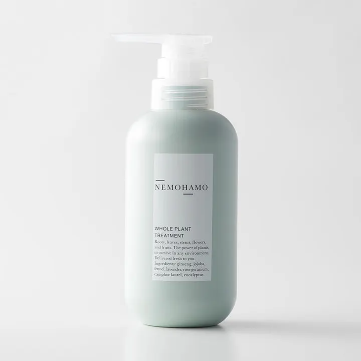 【業務用/ミニサイズについて一般小売・転売等はお断りいたします】 植物由来成分で地肌をケアしながらつややかなうるおい髪へ。 オタネニンジン、ホホバなどの植物エキスやオイルを贅沢にブレンドした美容液のようなトリートメント。髪によくなじみ、しっとりとつややかな髪に導きます。和ハーブとラベンダー、ゼラニウムのリラックス効果の高い香り。 「ミシュランガイド京都・大阪+岡山 2021」掲載ホテル「GOOD NATURE HOTEL KYOTO」のバスアメニティーとして使用されています。空気が乾燥しがちな季節の「パサつき」「広がり」にもおすすめです。 〇植物まるごとトリートメント。 植物由来成分がダメージを受けた髪にしっかりと密着し、補修しながらつややかに仕上げます。丁寧に馴染ませながら、ラベンダーやゼラニウムなどの植物がおりなす奥深く、透明感のある香りでリラックスタイムをお楽しみください。石油系成分無配合、ノンシリコン処方。NEMOHAMOシャンプーとセットで継続してお使いいただくとより効果的です。 〇乾燥しがちな秋冬の季節 気になる「パサつき」や「広がり」に。 リピーター続出のヘアケアアイテムです。乾燥しがちな秋冬の季節、気になる髪のパサつきや広がり、頭皮のニオイ※1に。 <スタッフおすすめの洗い方> 地肌を洗うことを意識し、頭皮のマッサージを重点的に行うことをおすすめします。植物由来成分で地肌の感覚が軽くなり、髪1本1本の指通りが滑らかな仕上がりに。洗浄と潤いのバランスも理想的。この使用感をぜひご体感下さい。※2 ※1 ニオイの元となる汚れや皮脂の除去。 ※2 スタッフ個人の感想です。 〇人にも、自然にも優しい。 日々の生活に寄り添う NEMOHAMO 植物の力をあますところなく引き出し、 良質な植物が持つ成分を活かしながらフレッシュなまま、あなたへ。 石油由来の原料を一切使用せず、天然成分のみでNEMOHAMOはつくられます。 植物まるごとのちからを最大限に引き出すため、植物の栄養分を壊さない低温真空抽出によるエキス化。 植物由来成分を活かしたプロダクトだからこそ、ご家族でお使いいただくのはもちろん、パートナーとシェアするなど、男女の枠を超えたジェンダーレスケアも叶います。 〇海と山に囲まれた、自然豊かな場所で。 里山・自社農園の植物を主に使用。 NEMOHAMOがつくられる工場は、福岡県の北部、遠賀郡芦屋町。工場のすぐ裏には、農薬や化学肥料を使わない独自の方法で管理する里山・自社農園があり、その一部で農園を管理しています。その里山でたくましく育つ植物たちなども成分として配合※されています。 ※ツバキ/ヨモギ/カキドオシ/スギナ/ビワ/ローズマリー ※製品により配合成分は異なる。 〇「人にも、自然にも、いいものを。」 サステナビリティ発想のバスアメニティ。 NEMOHAMOのシャンプー・トリートメント・ボディソープ・ハンドソープは、GOOD NATURE HOTEL KYOTOやクルーズトレイン「ななつ星in九州」をはじめとする全国のホテル・旅館・宿泊施設などでも採用されています。植物由来で人にも地球にも優しいホテルバスアメニティをご自宅のバスルームで。 <GOOD NATURE HOTEL KYOTOについて> 食、肌に触れるものから空間まですべてにおいて、体に優しいものにこだわった、GOOD NATUREを五感で楽しめる体験型ホテルです。2020年8月、世界で初となるホテル版評価基準による、WELL認証(V1)をゴールドランクで取得。また、 世界基準の環境評価ツールであるLEED認証も関西ではじめて取得しました。 〇こんな方におすすめ ・毛先がパサつきやすい ・髪の毛にツヤが欲しい ・頭皮ケアをしたい 〇キー成分 ・オタネニンジン 日本では和漢として広く知られ、古くから重宝されているオタネニンジン。対馬で農薬不使用で育てられた3年もののオタネニンジンの、ひげ根も葉も茎も花も、あますところなくエキス化しました。ハリ/ツヤ/整肌/保湿など、肌にうれしい効果が凝縮されています。 〇植物成分 オタネニンジン(保湿成分)、ホホバ(エモリエント成分)、ウイキョウ(賦香成分)、ラベンダー(賦香成分)、ゼラニウム(賦香成分)、クスノキ(賦香成分)、ユーカリ(賦香成分) 〇配合しない成分 石油由来合成香料、石油由来合成着色料、石油由来合成防腐剤、シリコン、鉱物油、石油由来合成界面活性剤 〇ご使用方法 洗髪後、軽く水気を切り適量を髪になじませ洗い流してください。頭皮に揉みこむようにマッサージするとより効果的です。 〇パッケージへのこだわり ・容器は90%以上がサトウキビの廃液由来の素材でできているバイオマスPEを採用しています。本来捨てられていた原料を再利用できる上、バイオマスPEは通常の樹脂と比較して、製造・輸送・廃棄までのCO2の排出量を約7割削減できます。 ・バスルームは1日の終わりのリラックススペース。 植物モチーフのグレートーンのカラーパッケージで、暮らしに馴染むデザインを採用。無駄のないシンプルで洗練されたデザインは、ギフトとしても人気です。