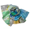 色とりどりの柑橘系くだものをばっさり切って割ったようなデザインのカラフルなストールは くだもののみずみずしさが伝わって来て、とても元気が出るようなイメージです。 合わせる洋服とのコーディネートも楽しくなり、出掛ける気分も盛り上がります。 素材は夏にぴったりの綿麻混素材。さらっとした麻の触感に綿の柔らかさがプラスされて程良いシャリ感になっています。 70×180㎝と大判サイズですので、ふわっとボリュームのある巻き方や柄を目立たせるように首にさらっと掛けて垂らすなど、巻き方も色々楽しめます。