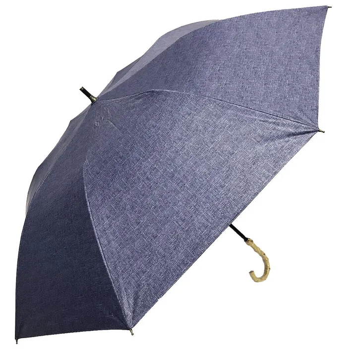 日本政府 推奨商品 ショートワイド傘 ダンガリー生地風プリント UVカット&完全遮光 遮熱 27395 インディゴ