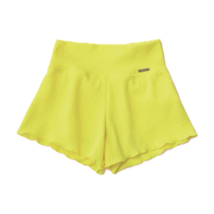 ボトムスの中にショーツをセットしたルームウェア。 むれやすいマチ部分は、おりものなどの少量の水分をすぐに吸収拡散するこだわりの素材を採用しているので、いつでも履いた直後のようなサラっとした着用感が続きます。 身生地はワッフルのようにマス目状の凸凹のある生地で、やわらかく、身体を包み込んでくれるような優しい肌触りです。