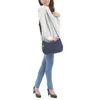 デニム地のバッグ.シンプルなデザインなので実用性もバッチリ☆アクティブに使えるうれしいショルダータイプです♪開口タイプ/ファスナー式 ■ポケット/ (内側)ファスナー×1、オープン×2 (外側)前ファスナー×1