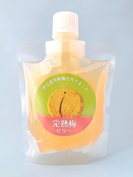 伊豆産の完熟梅から作った、完熟梅らしい香りや酸味の感じられる、やさしい味わいの飲むゼリーです。 梅を完熟期に収穫し、丁寧にペーストに処理して、北海道産のビートグラニュー糖・寒天・こんにゃく粉で固めました。 ゲル化剤を用いず、寒天・こんにゃく粉で飲みやすい固さに固めています。 小腹がすいたとき、登山などのお出かけの際、暑い日の気分転換に、いろんな時に合う商品です。