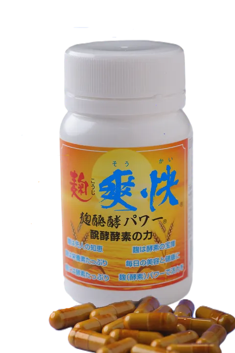 麹菌の「麹発酵パワーⓇ」で栄養豊かな国産大麦を醗酵させて造られた『麹爽快』は、大麦麹醗酵物と腸まで届く乳酸菌で腸活を、大麦麹醗酵物はセロトニンの材料となるトリプトファンを含み、ギャバと共に現代のストレス社会に必要なリラックスへの働きや睡眠も期待でき、さらに身体に必要なビタミンD配合、体全体のバランスをサポートする健康補助食品です。最新の科学研究に基づき開発され、厳選された自然由来の成分が使用されています。