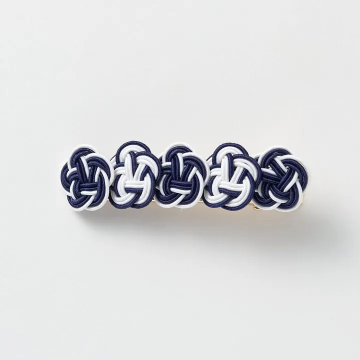 梅結びを4連でしつらえたクリップピンです。 繊細に結ばれた水引が、和の優雅さを引き立て、普段使いはもちろん、特別な日の装いにも華を添えます。小ぶりで主張しすぎないデザインが、どなたの髪にも自然に溶け込みます。和装にも洋装にも馴染むため人気です。 さりげなく和の風情を取り入れたい方へ。自分へのご褒美にも、大切な方への贈り物にもおすすめです。
