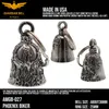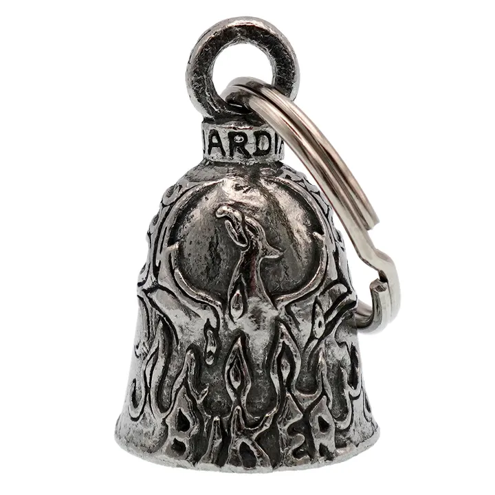アメリカ製ガーディアンベル社製ガーディアンベルです。 MADE IN USA アメリカ製 交通安全 魔除け 御守り ガーディアンベル アメリカのライダーの間には、事故や、転倒の原因は「道路にひそむ悪魔」によるいたずらだという伝説があります。悪魔は走る者に悪戯やトラブルを運んできます。このベルは美しい音色で悪魔たちを追い払うと言われ愛されています。そんな悪魔のいたずらを防ぎ、御守りとなるのが、守護者のベルという意味を持つガーディアンベル。 日本でも鈴の音(ね)は神道では魔除けの音と言われています。ピューター製の鈴でいい音色でガーディアンベルはデザインも様々あります。 またガーディアンベルにまつわる伝説として、プレゼントとして送られたベルの効果は、自分で手に入れたものの2倍になると言われています。 それゆえに彼氏・彼女・友達・家族へのプレゼントとしての人気も非常に高まっています。 シルバーアクセサリーのようにおしゃれに装着できて素敵な音色を奏でるガーディアンベル。 バイカー以外にも自転車や旅・交通安全のお守りとしてお使いいただけます。 カバン・ランドセル・キーホルダー・ペットの首輪等に付けてお使いください!! ※タイラップ等でバイクのフレームにも簡単に取り付けできます。 アメリカンモデルだけではなく、旧車ファン、レプリカライダーまで、さらにバイクだけでなく、自転車や車にもピッタリな御守りとなっています。 アクセサリーとしても人気で、アイディア次第で車体だけでなく、キーホルダーや鞄など、どこにでも付けておしゃれに楽しめます。