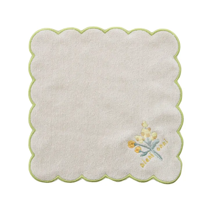 “pieni onni(ピエニオンニ)”=フィンランド語で「小さな幸せ」 日常にいつも小さな幸せを感じていただけるよう願いを込めました。 北欧風デザインのフレグランスシリーズに、お花の刺繍入りタオルハンカチが仲間入り。 ベージュカラーのパイル生地に可愛らしいスカラップデザインを組み合わせて、洗練された大人っぽい雰囲気にしました。 ロゴ部分は金刺繡、お花部分は複数の色糸を使用し、奥行きと特別感が感じられるデザインで上代¥600は大変リーズナブルかと思います。 リードディフューザーやフレグランスペーパーとの組み合わせで、統一感のあるギフトセットも可能です。 揃えてのご展開がおすすめです。