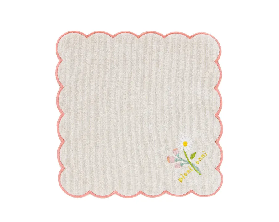 “pieni onni(ピエニオンニ)”=フィンランド語で「小さな幸せ」 日常にいつも小さな幸せを感じていただけるよう願いを込めました。 北欧風デザインのフレグランスシリーズに、お花の刺繍入りタオルハンカチが仲間入り。 ベージュカラーのパイル生地に可愛らしいスカラップデザインを組み合わせて、洗練された大人っぽい雰囲気にしました。 ロゴ部分は金刺繡、お花部分は複数の色糸を使用し、奥行きと特別感が感じられるデザインで上代¥600は大変リーズナブルかと思います。 リードディフューザーやフレグランスペーパーとの組み合わせで、統一感のあるギフトセットも可能です。 揃えてのご展開がおすすめです。