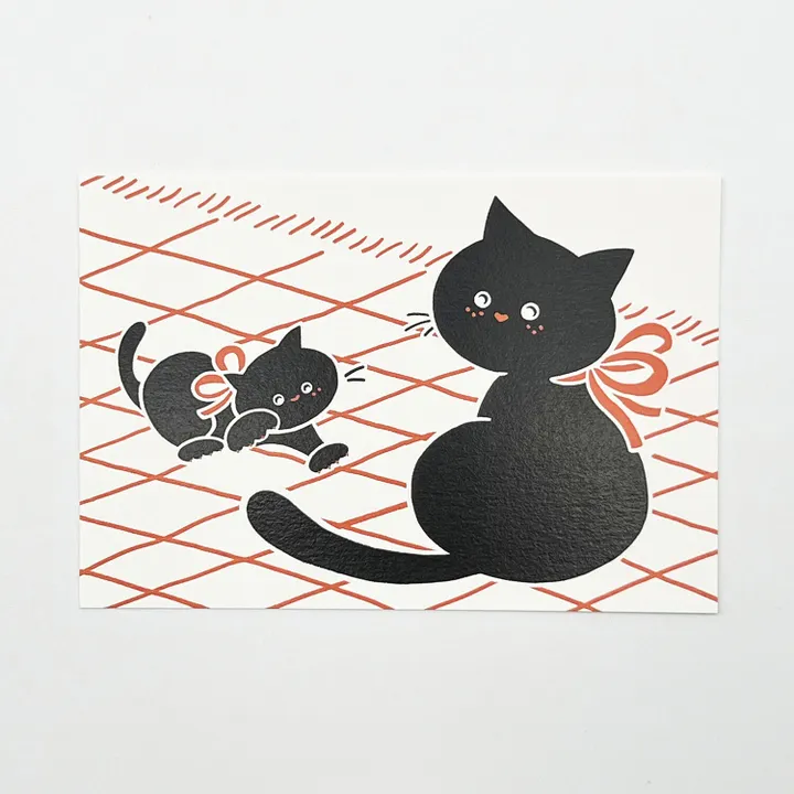 『黒猫の親子 by きくちみう』 猫好きクリエイターが描く、猫の偏愛がカタチになったポストカードです。 お部屋に飾ったり、グリーティングカードとして贈ったり、プレゼントにメッセージカードとして添えたり、使い方色々♪ あなたの”推し猫”を見つけてください。