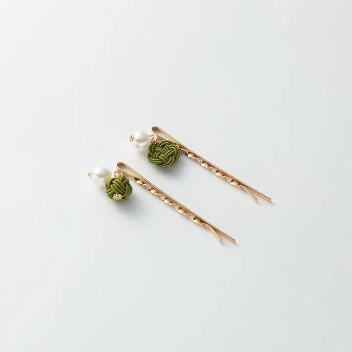 伝統の結びを纏う、格調高き小玉ヘアピン 古来より縁起の良い結びとされる水引。その繊細な技を極めた「小玉」が、気品ある輝きを放つヘアピンとなりました。 控えめでありながらも、格式と美を兼ね備えた佇まい。髪に添えるだけで、装いに品格と趣をもたらします。 格式ある和装から、洗練された洋装まで調和する気品を備えた逸品です。 雅やかさと静謐な美しさを宿した、特別なヘアピン。 日常の装いに、そして晴れの日に。日本の伝統が織りなす優雅な輝きをお楽しみください。