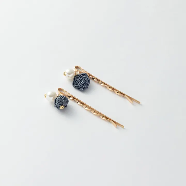 伝統の結びを纏う、格調高き小玉ヘアピン 古来より縁起の良い結びとされる水引。その繊細な技を極めた「小玉」が、気品ある輝きを放つヘアピンとなりました。 控えめでありながらも、格式と美を兼ね備えた佇まい。髪に添えるだけで、装いに品格と趣をもたらします。 格式ある和装から、洗練された洋装まで調和する気品を備えた逸品です。 雅やかさと静謐な美しさを宿した、特別なヘアピン。 日常の装いに、そして晴れの日に。日本の伝統が織りなす優雅な輝きをお楽しみください。