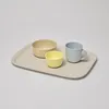 taneの食器を載せるトレイを作りました。 A4サイズで使いやすく、縁を持ちやすくデザインしています。 木繊維を40%含んでおり、独特の柔らかい質感を持ちながらとても丈夫です。 専用ボックスケース入りでギフトとしてもご検討ください。
