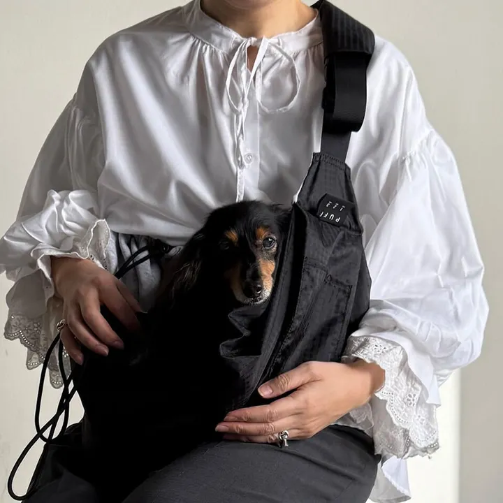 密着度がup↑やわらかな素材感のリバーシブルスリングバッグ。 表生地には、撥水加工が施された生地を使用。 突然の雨でも安心☂(※完全防水ではありません。) 撥水加工された生地は、汚れなどをさっと拭き取ることができます。 裏側は全色共通でスウェット素材を使用。 リバーシブル仕様なので、どちらも表に使用してもOK! 両側にはオープンポケット付き。 おやつやエチケット袋など小物収納に便利◎ コードでしっかり固定できるの落ちる心配なし! 片側にはジッパーポケット付き。 口元には、ペットのサイズに合わせて調整可能な巾着コード付き。 ショルダーテープは長さ調整可能◎ ペットのサイズに合わせて体にフィットできます。 着脱スムーズなパーツを使用しているので、アウター下などに着用しても スリングを降ろしやすくなっています。 アタッチメント部分のショルダーパッドを移動させて、 長時間のお出かけ時、オーナー様の肩への負担を軽減! 軽量で持ち運びやすく、両手フリーでご使用いただけます。 ベーシックなカラーとカラフルなカラーをご用意しました! 【PUFF 販売価格について】 弊社設定上代(税込価格)での販売のご協力をお願いいたします。 また、商品に対してのクーポン等はご遠慮いただいております。 ショップ全体でのクーポン等は問題ございません。 ご理解・ご了承のほどお願い致します。