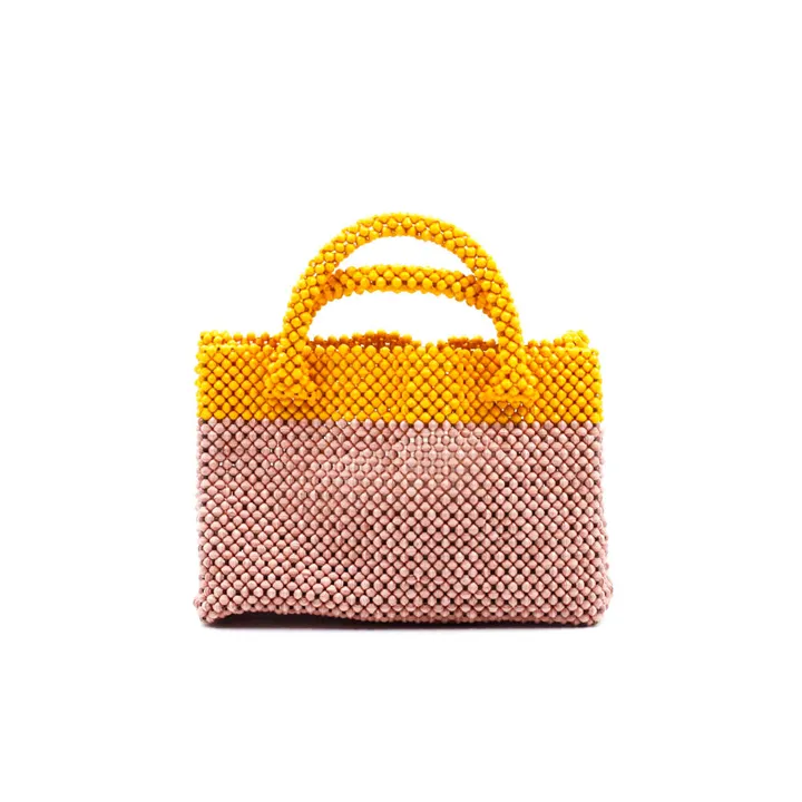 ペーパービーズ・ツートーンバッグ - イエロー&ピンク -