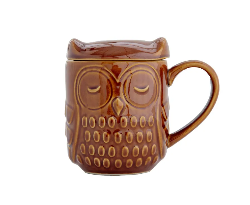 森フクロウ/蓋付きマグカップ 7206MFR002 ブラウン