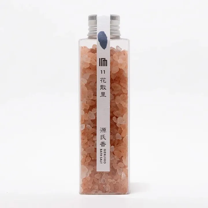 【源氏香アロマバスソルトシリーズ 〜源氏物語の5人の姫君をイメージした香り〜】 「源氏香」とは江戸時代に大流行した組香遊戯です。源氏香アロマバスソルトシリーズでは名付けの元となった「源氏物語」に登場する5人の姫君をイメージし、アロマバスソルトで表現しました。 【11 花散里 RELAX 落ち着いた癒しの香り】 花散里は桐壺帝(光源氏の父)の妃である麗景殿女御の妹の名で、彼女は源氏とは若い頃から関係がありました。出自が高いながらも温和で慎ましい性格であり、裁縫や染物にも堪能な女性でした。彼女は源氏や彼の家族をもしっかり支え、妻の中では紫の上に次ぐ立場となるくらい源氏はとても信頼を寄せていました。どこか家庭的で安心できる存在として心を癒してくれる愛情豊かな女性です。 商品特徴 天然ミネラルを豊富に含んだヒマラヤ岩塩とブレンド精油を使用。肌を引き締めキメを整える作用がある他、ゆっくり汗を排出する半身浴にもおすすめです。 ご使用方法 180gボトル:浴槽約180Lに対し本製品を20〜40g程度投入しよくかき混ぜてからご入浴下さい。 30g包:浴槽約180Lに対し1袋を投入して、よくかき混ぜてからご入浴下さい。 成分 塩化Na(ミネラル塩)、香料(ラベンダー/スイートオレンジ/パルマローザ/マージョラムスイート/クラリセージ)