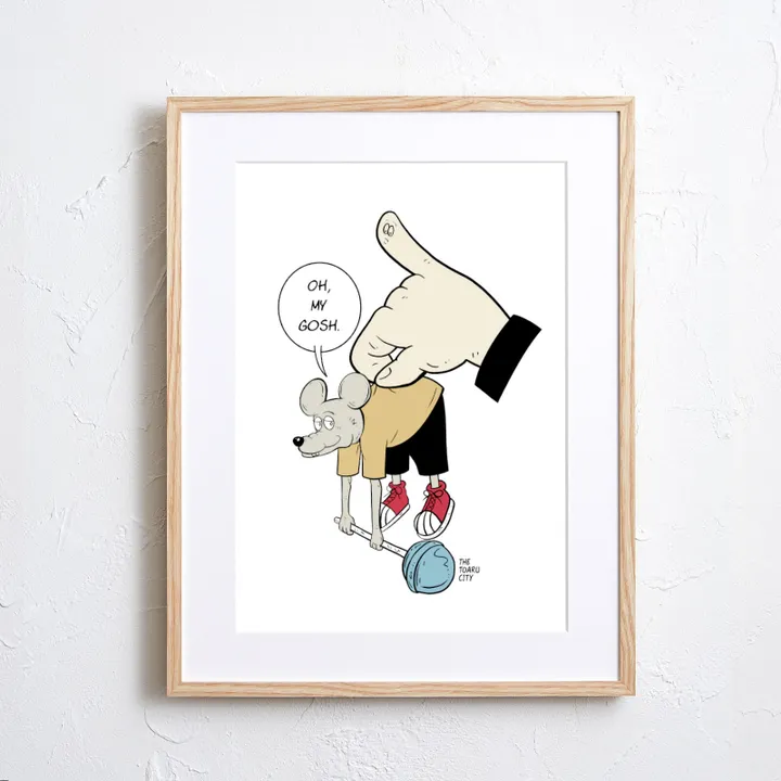 アーティスト -PROFILE- toaru(トアル) イラストレーター 架空の街「THE TOARU CITY」をテーマにしたシリーズに取り組んでいます。 このシリーズでは、街の住人・街のワンシーンをポップでユーモアあふれるタッチで描いています。 どこか親近感のある「THE TOARU CITY」の住人たち。 音楽を楽しむシーンや、夜の賑やかなひとときなど、街の一瞬一瞬がユーモラスに描かれています。 モノクロのシンプルなイラストから、カラフルで生き生きとしたイラストまで、多彩な表現で街の魅力を引き出しています。 【作品について】 あ、ネズミが捕まった! ファンキーなイラストがおしゃれなtoaruのアート コミカルでセンスある作品は中毒性があります 作品名:なんてこった 手法:イラスト、デジタル ペーパー:高品質半光沢紙 マットカラー:白 マット*:DXホワイト芯 100%バージンパルプ/PH7・中性紙(2mm厚) ※全てのアートにマットがつきます フレームカラー:黒、白、無垢(3種類から選択) ※マット付のため通常とはフレームサイズが異なる規格となります。 【マット*とは?】 アートポスターの周りに挟んだ厚紙の事。 マットを使わない時に比べ余白により広がりが生まれ、作品の新たな一面を引き出せ作品の見栄えがグッと良くなります。また、額縁のガラス面と作品が直接触れたままにしておくと、くっついて作品を傷つけることがあります。マットを使用することでガラスと作品の間に空間ができ、作品を保護することができます。ブランドコンセプトにより全てのアートにマットがつきます。 ー ファッションのようにアートを ー 私達が掲げるコンセプトです! 毎日着替えるファッションの様に、アートも気軽に飾り変えて欲しい... 一旦飾り終えたアートにも光を当ててほしい... ポスター単体、またはリピートで中身だけのポスターを購入された方に"専用のハンガー"をセットでお届け。 「今までに無い!新しいアートの飾り方を提案」 飾る事がなくなった前のアートをハンガーにかけて洋服と一緒にかけてもらう。 その日の気分や、モチベーションですぐに取り換えられる様に。 もちろん、魅せる収納としても今までにないおすすめの飾り方です。