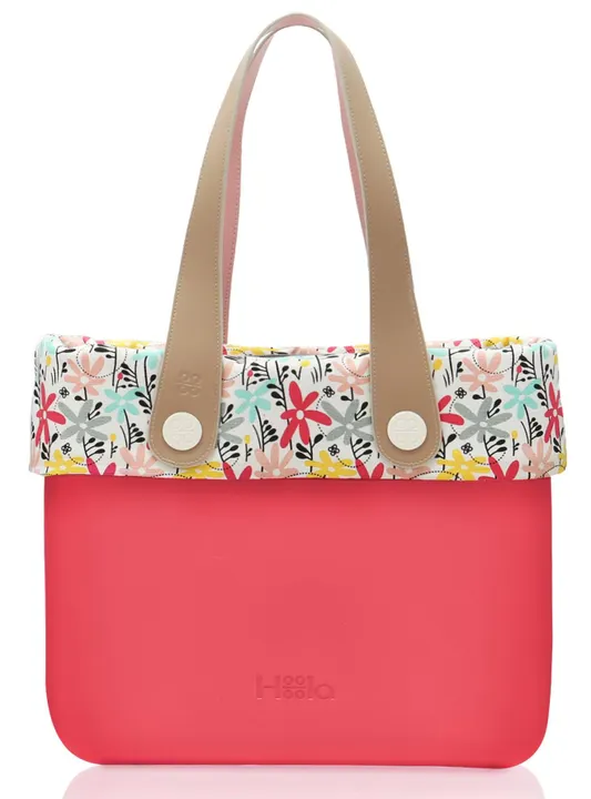 ◆ひときわ華やかな印象を与えてくれる、花柄のドレスカバーを取り入れたトートバッグ。ピンクのフレームと花柄の相性が良く、ツイストリベットとフラットハンドルが優し気な表情。インナーバッグは大人めなグレーで、フレームとのギャップを感じさせてくれますA4サイズが入るトートバッグです。※インナーバッグ付きになります。   ■構成部品<br>Frame:Pink Punch Flat Handles :Pink Beige  Plastic Twists:Cream Frou-Frou :Hoola Blooms Alma In-Bag:Grey