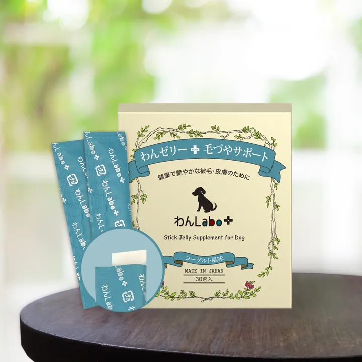 <獣医師監修> 1000億個の乳酸菌配合 おなかと毛づやをサポート!  ヨーグルト風味 × お手軽ゼリー 「わんゼリー+毛づやサポート」 続けやすさと美味しさにこだわって開発したわんちゃん用ゼリーです。 「FK-23 乳酸菌」 「ガラクトオリゴ糖」 オメガ3系脂肪酸の「亜麻仁油」配合で、愛犬のおなか・毛づやをサポートします。更に、40種類以上の果実や野菜を有用菌で半年以上発酵熟成させた「熟成酵素」が健康を維持し、免疫力をサポートします。 1包あたり、なんと【1000億個】の乳酸菌配合で、おなかと毛づやをサポート 野外イベントでは、冷やして試食していただいています♪ <商品について> 名称:犬用健康補助食品 成分名:ガラクトオリゴ糖液糖、イソマルトオリゴ糖、ベニバナ油、寒天、乳酸菌(フェカリス乳酸菌)、亜麻仁油、グルコマンナン、濃縮植物発酵エキス(熟成酵素)、香料、pH調整剤(クエン酸) 原産国 :日本 保存方法: 直射日光・高温多湿を避けて保存してください。 使用方法 : <使用上のご注意> 本品は愛犬と愛猫用です。使用中に異常があらわれたときはすぐに使用を止め獣医師に相談してください。 ペット及びお子様の手の届かないところで保管してください。天然成分を使用しているため色調や香りに若干差が生じる場合がありますが、品質に問題ありません。 \ こだわりの成分を配合 / わんちゃんの健康維持におすすめの安心・安全な原料を配合しています。 ~自社培養素材 熟成酵素”ビオチーム”~ 40種類以上の野菜や果実を酵素を独自の有用菌で半年以上発酵・熟成させた植物エキス酵素(タンパク質)を、吸収されやすいアミノ酸やペプチドとし、その他有用物質を豊富に含んだ熟成酵素が配合されています。 ~ FK-23 乳酸菌 ~ 加熱処理をしてパワーアップしたフェカリス乳酸菌が皮膚や被毛の健康維持をサポートします。 ~ ガラクトオリゴ糖 ~ 腸内の善玉菌を助けるオリゴ糖の一種です。善玉菌のエサとなり、腸内細菌叢を整えます。 ~ 亜麻仁油・紅花油 ~ 植物から採取される油で、オメガ3-6系脂肪酸を含有します。体内の様々な機能に関与し、健康をサポートする成分です。 おやつ感覚で美味しく腸活をしてみませんか?