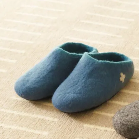 フェルト スリッパ メンズ (裏黒革) ブルー