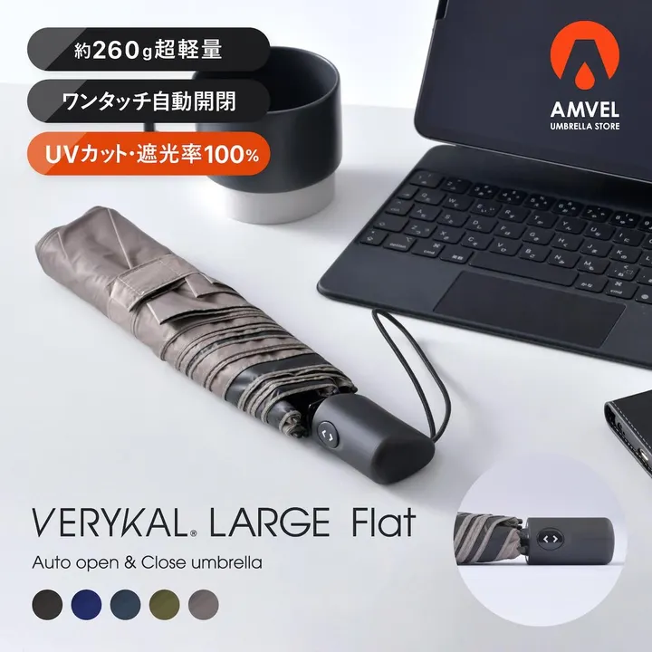 【NEW!】大きめサイズでフラット・100%遮光生地を使用した自動開閉折りたたみ傘 VERYKAL LARGE Flat(ベリカルラージフラット) ブラック