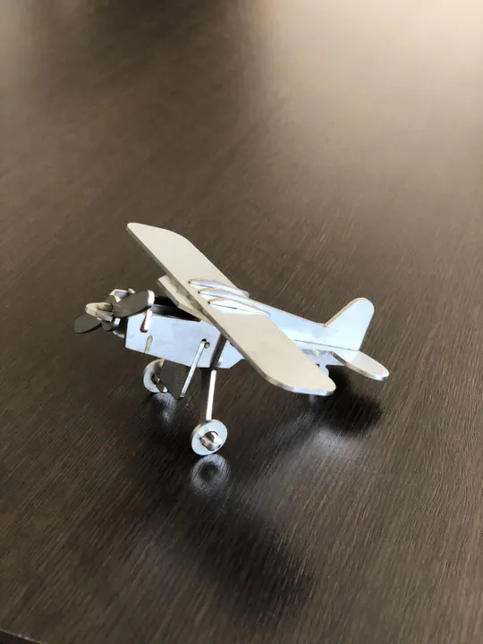 お空は飛べませんが いつか空飛べることを夢見て… ・ ・ ステンレス製の模型組立てキット。 子どもから大人まで、飛行機好きにとっての夢の一品です。 【MITSUWA-factory】が贈る、ステンレス材のシンプルなデザインが特徴で、インテリアとしても存在感を楽しんでいただけます。 お好きな文字を刻印したオリジナルネームプレートもお作りできます。 大切な方への贈り物や自分へのご褒美にも最適です。 組立シリーズの中では難易度も軽く、お子様にも組み立てていただきやすいです。