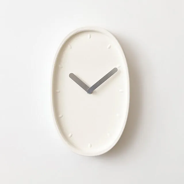 パルプモールドという「紙の立体成型技術」でできた超軽量の時計です。シンプルながら斬新なフォルムで、縦向きでも横向きでも使うことができます。 安定感と潔さが魅力のWhiteと、他のカラーも、染料1滴の濃度にまでこだわって美しい色で表現することができました。 掛け時計といえばありがちな、ビスで壁に大きな穴を開けることもなく押しピンでもしっかり止まります。 インテリアと調和しながらも、美しく柔らかい影がレリーフのように上品な存在感を示します。 *ご購入前にご確認ください 本製品は、デザイン性を重視した楕円形の時計です。一般的な円形時計とは異なり、目盛りの間隔は視覚的なバランスを考慮したデザインとなっていて、おおまかに時間を把握することができます。目盛りはデザインの一部であり、厳密な時間表示を目的としたものではありません。 デザインや色の美しさがインテリアでアクセントになる商品です。あらかじめご了承のうえ、ご購入いただきますようお願いいたします。 ================================================ 大成紙器製作所は、紙の道具「紙器具しきぐ」を提案するブランドです。 古くから日本人にとって紙は、手紙や葉書のように「伝える」のみならず、物を「収める」、 障子やランプシェードのように空間を調整する(設える)など、生活の中に取り入れる文化があります。 「紙器具」とは、紙が私たちの暮らしに寄り添う道具として考え、その価値を再発見し 「伝える・収める・設える」を理念とすることでつくられていく新しい日用品です。