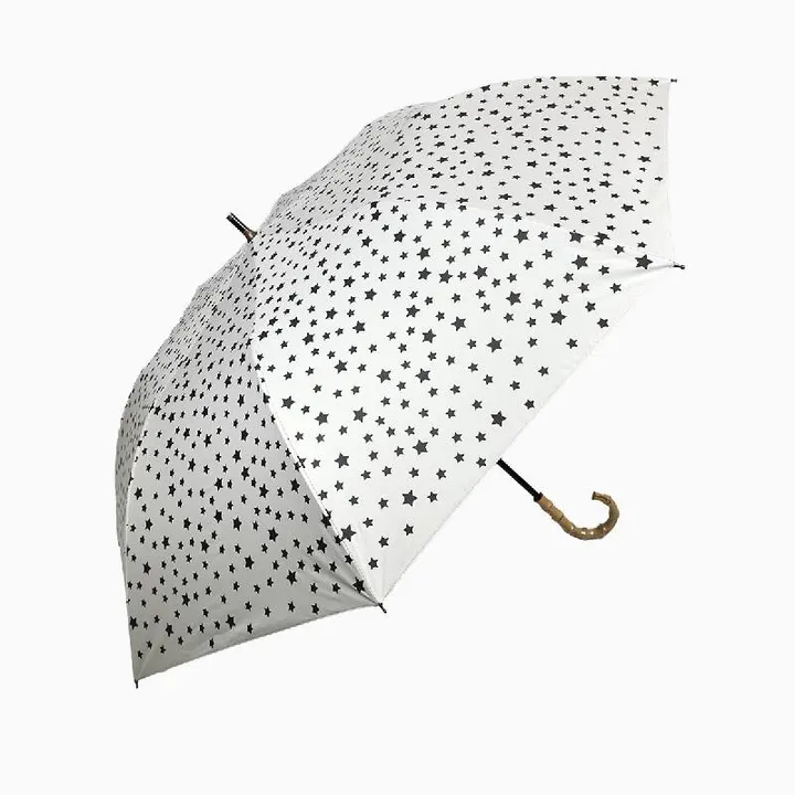 日本政府 推奨商品 ショートワイド傘 竹手元 星柄 晴雨兼用 UVカット&完全遮光 遮熱 27386 オフホワイト