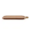 カッティングボードのデザインをベースにしながら、ナッツやベリーなどコロコロ転がりやすい食材もしっかり受け止められる“プレート型”に仕立てたこの商品は、カッティングボードとプレートを掛け合わせた「カッティングプレート」です。チーズ、クラッカー、ドライフルーツなどを盛りつければ、テーブルを囲む会話が自然と弾むパーティシーンに。アルミのトングやジャムスプーンとの相性も抜群で、コーディネート次第で食卓がぐっと華やぎます。素材にはアカシアを使用し、表面にはポリウレタンコーティングを施しているため、水気や油汚れにも強く、日常使いしやすい仕様です。来客時はもちろん、休日ブランチや晩酌のワンプレートにも活躍します。 ※本体はジョイントになるものがあります。天然素材を最大限に使用するため、ご理解ください。