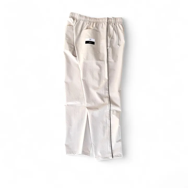 サイドのラインがアクセントで人気だったチラックスのナロータイプができました。 かなりスッキリしたシルエットになり、レングスはフルレングスのままキープ。 センタークリースにはせず、ポリエステルのサラッとした生地感もそのままに。 コーディネートの幅が広がる とってもチルなスラックスです。 Product Description The popular Chillacks slacks with side-line accents are now available in a narrow fit. The silhouette is noticeably cleaner and more streamlined, while the full-length cut remains unchanged. Finished without a center crease and made from the same smooth, lightweight polyester fabric, they keep their relaxed feel while offering greater versatility in styling. A refined yet easygoing pair of slacks that expands your everyday options.