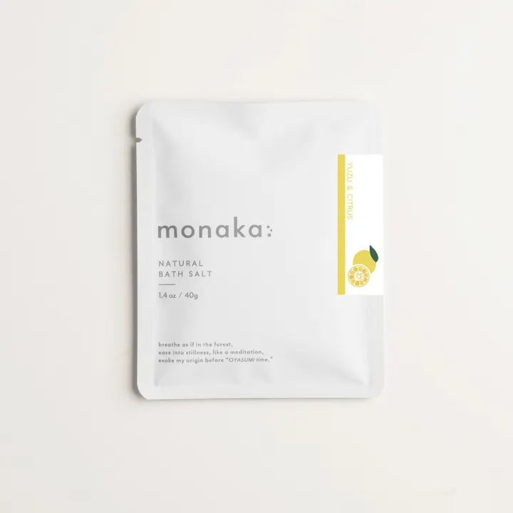 monaka ナチュラルバスソルト ゆずシトラス 40g(1回分) / 320g(8回分) 【森の中を歩くような心地よい入浴を】 目指したのは「極上のバスソルト」 花や果実、草木など、自然そのままの香りや色合いを大切に仕上げました。 まるで素材を味わうかのように浸る、優しい入浴時間。 【ゆずシトラス】 ユズ精油 × シトラス精油 -湯気と共に広がる、こころ弾む爽やかな香り- 太陽の恵みをギュっと詰め込んだ、瑞々しく透き通った柑橘の香りは、 お風呂が楽しくなること間違い無し♪ 【LINE UP】 〇プレミアムヒノキ 〇プレミアムはちみつレモン 〇はちみつジンジャー 〇ゆずシトラス 〇プレミアムみかん 〇プレミアムラベンダー 〇プレミアムローズ 〇クレイ月桃 〇キャラメルシナモン 〇キャラメルバニラ 【ミネラル豊富で環境にも優しい天然塩】 西オーストラリアの塩田で製造される「シャークベイソルト」を使用。 太陽と風の力で2~3年かけて結晶化させる「天日塩製法」で作られた塩は、環境にも優しいだけでなく、 カルシウム・マグネシウムなどのミネラル成分が豊富に含まれる。 【ヒアルロン酸Na配合】 1gで約6Lもの保水力を誇る、保湿美容成分を配合。 【使用法】 140~160Lのお湯に対して40g程度を目安に入浴前に入れてご使用ください。 【お知らせ】 ●追い焚きしないでください。 ●色や香りが残らないよう、入浴後はすぐに洗い流してください。 ●商品の特性上、LOTや時間で色や香りが変わることがあります。 ●本品は雑貨です。 【販促物】 ◇ブランドカード(A5サイズ) ◇各種香り説明カード(名刺サイズ/縦) ◇共通プライスカード(名刺サイズ/横) ご入用の方は、備考欄にてお申し付けください。 関連ブランド・・・ ◇tamamono organic = 植物の力で心と体を整える / オーガニックコスメ、アロマ ◇WAKAPLUS = 和の香りを日常にプラスする / バスソルト ◇manaplus PRO = 美容サロンなどで使用するプロユースコスメ / キャリアオイル、アロマ ◇KOTOLABO = 京都発のフレグランスブランド / 練り香水、お清めミスト ◇monaka = 素材を味わう10種のバスソルト / ヒノキ、はちみつレモン、ラベンダー など