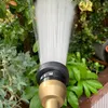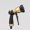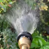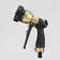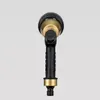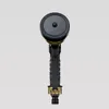 丈夫な金属タイプのノズルです。各ホースリール(ガーデンリールⅡ、コンパクトガーデンリールⅡ)の交換用パーツです。 ●手元で水量調整 手元で水量調整できるダイヤル付きなので、水道蛇口までわざわざ行く必要はありません。 ●4つの水形に切替 ノズルの先端を回すことで4つの水形(シャワー▶ジョロ▶ストレート▶カクサン)に変えることができます。 〈シャワー水形〉細かく柔らかな水流。 植物への水やり、清掃後の仕上げの洗い流しなどに適しています。 〈ジョロ水形〉最も柔らかでやさしい水流。 植物への水やりに適しています。鉢物や植え付けたばかりの苗の株元への水やりに。やさしい水当たりのため、ペットの足を洗ったりシャンプーなどにも良いでしょう。 〈ストレート水形〉線状の勢いある水流。 床や壁などの清掃に適した水形です。最も飛距離が出ます。※飛距離についてはご使用環境(水道水圧)により異なります。 〈カクサン水形〉放射状に広がる水流。 床や壁などの清掃に適した水形です。広がりの幅が最も広い水形になります。「ストレート」から「カクサン」への切り替えは、広がり具合が徐々に変化していきます。お好みの広がり具合に調整してご利用いただけ、掃除の際に便利です。もちろん植物への水やりにもご利用可能です。※ただし水当たりは粗くなります。 ●手元で簡単に通水・止水 レバーの握り具合で簡単に連続通水・止水が可能です。 ●負担軽減に役立つ「ラクロック」 レバーをロックする「ラクロック」を装備。レバーを握ると連動してストッパーがロックされ、通水中の手への負担軽減に役立つ。