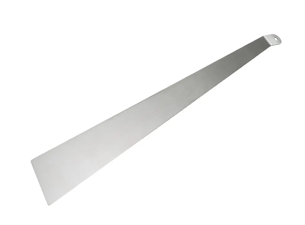 厚さ1ミリのステンレス板を研磨し、半分程度までそぎ落とすことで金属の持つ粘りと弾力を引き出し、シンプルなスパチュラに仕上げました。 柔らかな弾力と薄い刃先で食べ物の下にすっと滑り込み、ケーキや煮魚も綺麗に取分けられます。  薄くしなやかなステンレス製で清潔に使用できます。