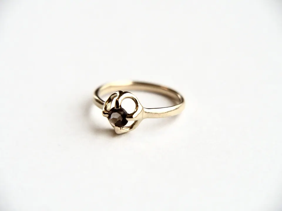 ・コンセプト 「心の内に秘めた光を引き出し、身に纏う人そのものを輝かせたい。」人は誰しも、心にきらりと輝く光を持っています。その光は、人それぞれに形が異なるからこそ美しく、素晴らしい。Rinnは、心に宿る光に寄り添うように、身につける人そのものを輝かせるジュエリーを提供しております。 「毎日身につけても壊れにくく、時を重ねるとともに肌に馴染んでいくようなジュエリーを」 Rinnは身につける人の肌と生活に馴染むジュエリーを提供しております。 ・デザイン 「他になく、永く愛されるデザインを。」 ジュエリーのデザインは、日常に溶け込んだささやかな美しさから生まれます。 例えば揺らめく布の柔らかさに触れた時や、朝陽が昇る瞬間に霞んでいたものが透き通って見えた時、感じ取った自然の美しさがジュエリーの形になっていきます。 そこへクラシカルな要素を取り入れることで、"Rinnにしかないデザイン"を意識いたしました。 お客様の生活に寄り添い続けるために、永く愛され続けるデザインにこだわりました。 そこには「親から子へと、時代を超えて受け継がれていって欲しい」という想いも込めております。どんな人にもどんな装いにも、しっくりと馴染み続けていくよう願いを込めてジュエリーを製作しております。 ・アイテム 表面の艶のない滑らかなテクスチャーが特徴のリセシリーズです。 トップのスモーキークオーツが浮いているように見えるセッティングで個性的なデザインになっております。