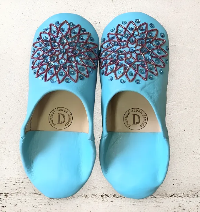 ・バブーシュとは革でできた室内履きです。 ・GJJが革と制作にこだわったオリジナルバブーシュです。 ・自然界にあるものをイメージして作りました。雄大な海のような美しい素敵な一足です。 ☆革の特長☆ なめし加工を丁寧に行った機械仕上げの羊革のみを使用しております。 革本来の匂いはありますが、獣臭はありませんのでご安心ください。