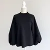 【日本製】2重織ストレッチジャージ_ボリューム袖プルオーバー【セットアップ対応】 ブラック