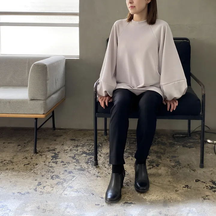 【日本製】2重織ストレッチジャージ_ボリューム袖プルオーバー【セットアップ対応】 ライトグレー