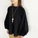 【日本製】2重織ストレッチジャージ_ボリューム袖プルオーバー【セットアップ対応】 ブラック